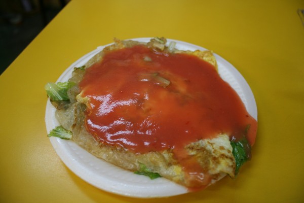 いろいろおいしそうなものはありましたが、昨日食べて気に入ったルーロー飯(20元)と、名物らしいカキ入りオムレツ(50元)を食べました。カキは小粒だったけどおいしい~。ケチャップがなんか得体の知れないピンク色でちょっとぎょっとしたんですがこれも問題なくおいしかったです。しかし何故ピンク色……。