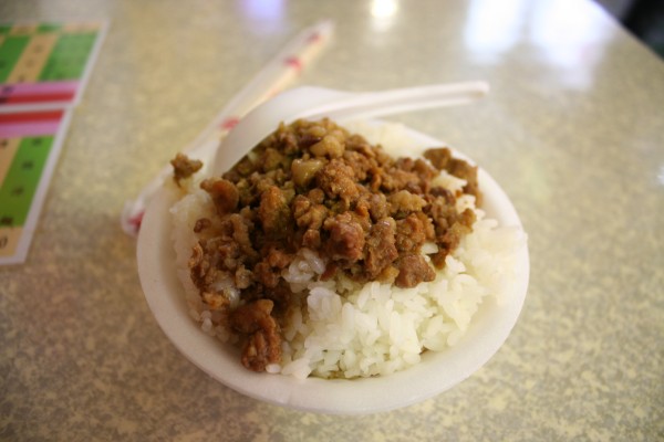 駅までの道のりでちょうど「ヒゲ張魯肉飯」を発見したので、魯肉飯とゴーヤの排骨湯をいただく。