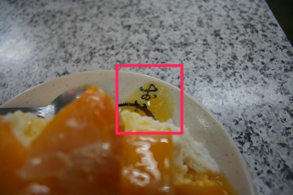 おいしい……まあ、皿に書く文字としてそれほど突拍子も無い文字ではない。日本人だって皿やら服やらにワケの分からん英語をプリントしてよろこんでるのでひとのことは言えん。かつて私は魚のイラストともに「fishes」とプリントされたTシャツだって見たことがある。ところでなんで魚って不可算名詞なんですか?数えられるだろう!
