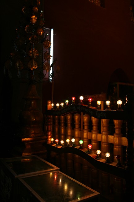 お金入れるとしばらくの間、カラフルな豆電球が灯るというお祈りグッズ。なんだかファンシーで微笑ましかった……。