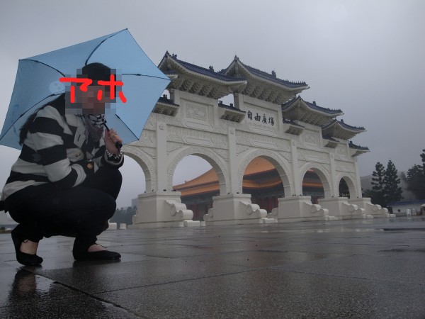 まずは中正紀念堂です。広いエントランスの左右にはドデカい音楽ホールがあります。そのせいだかどうだか知らないですが、MRTから地上へ上がる通路などでダンスなどのストリートパフォーマンスなどをしている方々が多かったのですが、ここの広場にもそういう方がたくさんいました。雨なのにねー。晴れてたらもっといるのかも。