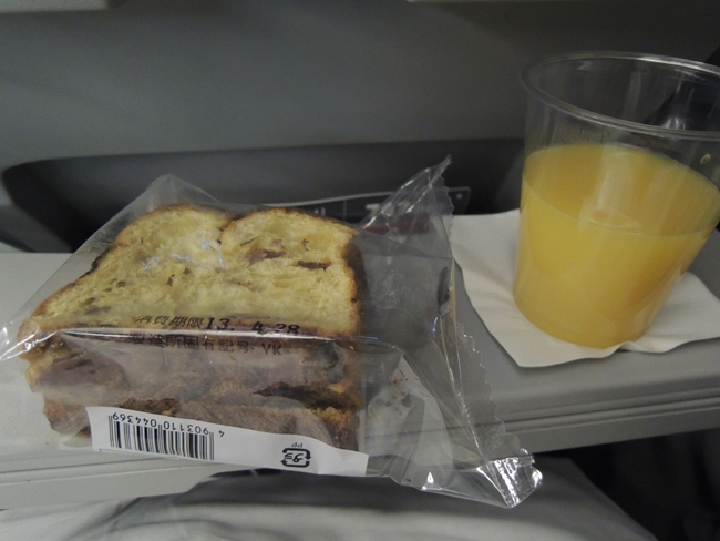 お休み前に飲み物とパンが配られる。頼んだらボトルウォーターも貰えたようだが気付かなかった……。どうせ余っても現地で飲むし、ボトルウォーター最初から配ってくれたらいいのに。前にバンコク行き乗ったときはくれたんだけど今はくれないんでしょうか。パンは流石にアレだけがっつり夕食摂った後では食べられなかったので、非常食としてそっと保管。明日、夕方までメシ食えないかもしんないし。