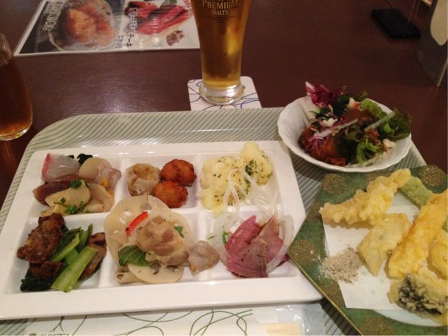 種類多いし、味も(失礼ながら)見た目以上。特に天ぷらはブッフェ台のすぐ後ろで揚げてどんどん出すので揚げたてでうんまい!穴子とかふわっふわ!あとトレイの形がいろいろ少しずつ取りやすくてよかった。