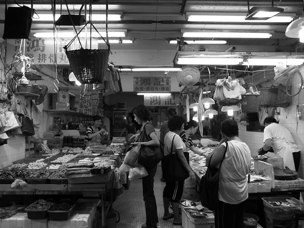 なんかー、ネットで見たところによるとー、ホテルの近くに安食堂街があるようです。で、こういう安食堂は営業時間も長くひとりでも入りやすいとききました。ウロウロ歩いてなんか香港っぽいわぁ!と言う夜の街の様子など写真に撮る。モノクロにするとなんかブレにくいよね!(私のカメラには手ぶれ補正なんて気の利いた機能がついていません。)