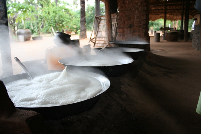 で、その後、ヤシ砂糖とお酒の造り方など教わる。工程としては、