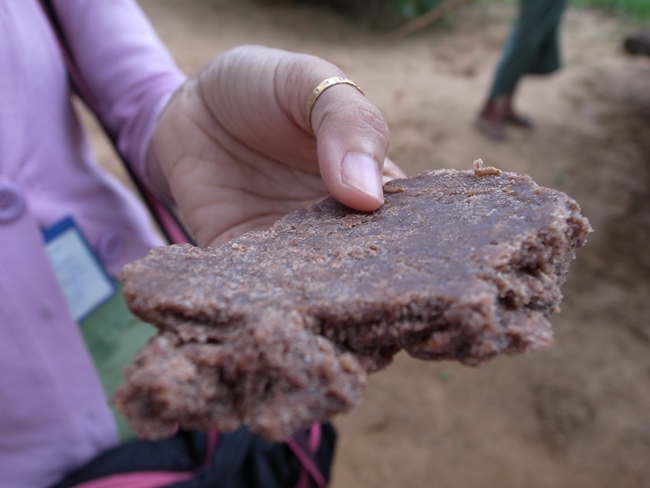 お砂糖はプレーンとタマリンドを練りこんだぶんと二種類作ってました。そのままおやつにしたりお料理に入れたりするそう。ガイドさんもタマリンド風味のを量り売りで買ってました。