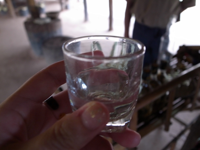 そんなのどかな景色をながめながらしばしドライブの後、「ヤシ砂糖やお酒を造っているところを見学しマス。」とのこと。はは~ん、よくあるお土産販売ですな~?と思いつつも、まあずっと車で走るだけも暇なので割と歓迎気分。