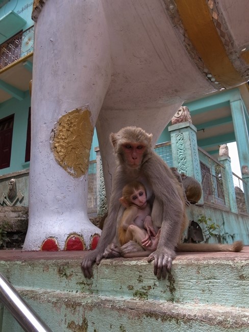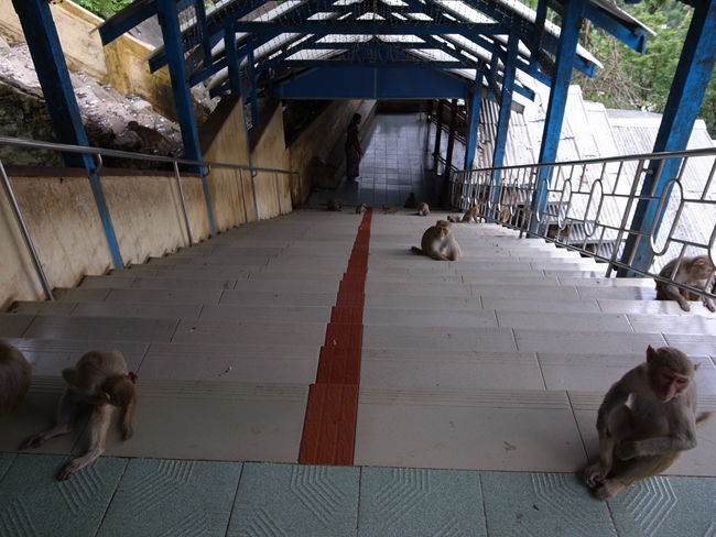 比較的緩やかな階段のところには、外よりは涼しいのでおさるさんたちがいらっしゃいます。