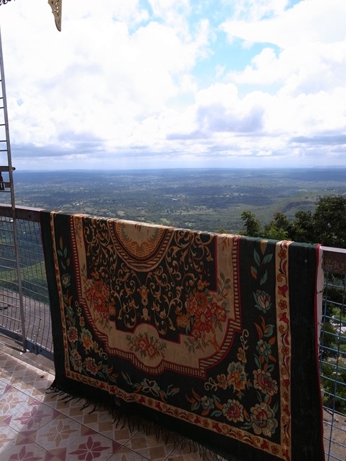 気持ちのよい風と見事な眺望がこれまでの疲れを忘れさせてくれます。てっぺんとその付近には幾つかお堂がありまして、仏様やナッの像などが置いてありました。お参りもいたします。