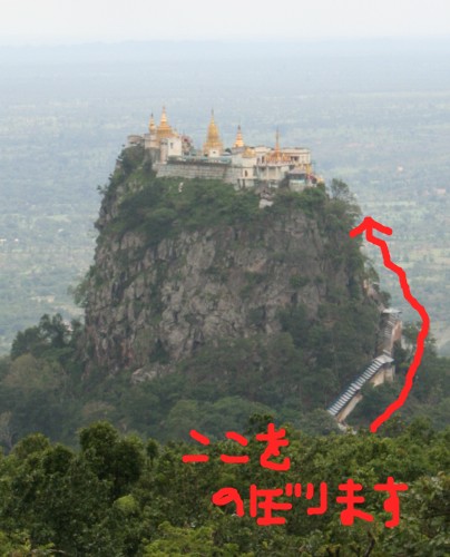 そしてこの結構な階段を裸足で登らないといけないんですね。ミャンマーではお寺の敷地内では裸足でなくてはいけません。タウン・カラッは山そのものがお寺の敷地なのです。だから裸足で登る。結構な距離の階段を裸足で登り続けると言うのは慣れないので結構しんどいかも?しかし、タウン・カラッへの試練はこれだけではなかったのです……!!