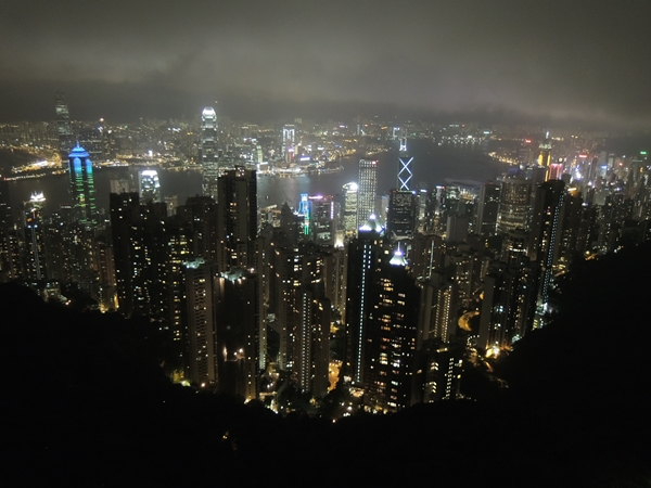 やってきました夜のヴィクトリアピーク。平日の方が夜景がキレイときいていたので平日にしたんだけれど、これだけ遅い時間だと意味がなかったか。初日のオープントップバスツアーのガイドさんにきいたのね。
