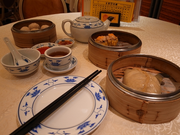 ふかひれの蒸し餃子、海老蒸し焼売、蟹の卵ののった焼売をオーダー。これに通ぶってプーアール茶を選んで125ドル。ジャスミンティーとかは外国人が頼む印象みたいです。まあ好きなの頼めばいいと思うけど。脂っぽいのに合いそうだし通ぶってみたくてプーアール茶をチョイス。これでも高くないと思うけど安いところはもっと安いらしいす。