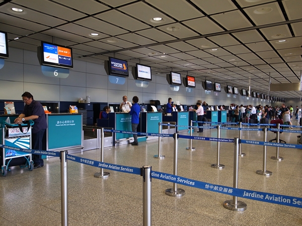 キャセイとかドラゴンとかは前日からチェックインできるそうです。その他の出発便も当日ならオーケー。しかも二時間前くらいまで大丈夫なんだよね。