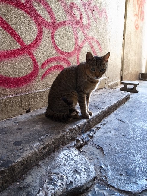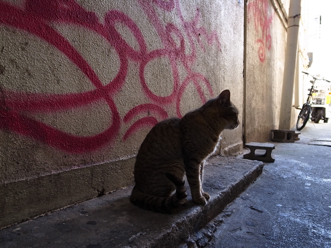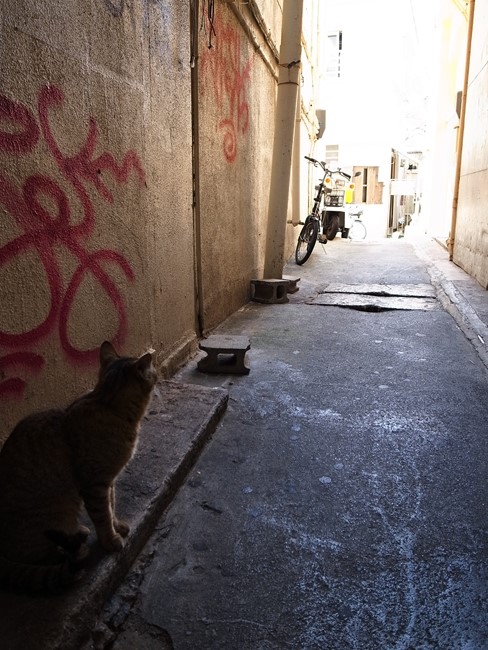 いやーん美人さーん!そんなに人なつっこくはなかったけど触らせてくれた!なんだか路地の奥をじっと見ているので、私もじっと見てみると……