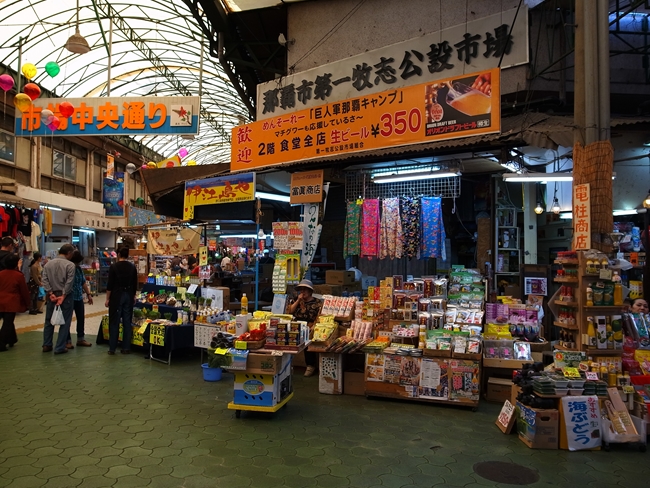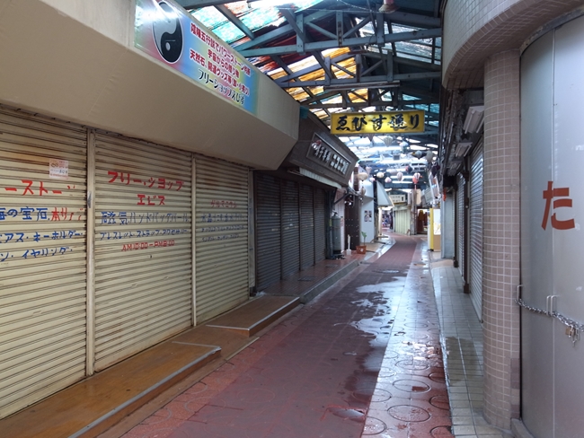 きょろきょろ飲食店を探しながらもブラブラ継続。したらば市場の前に出た。