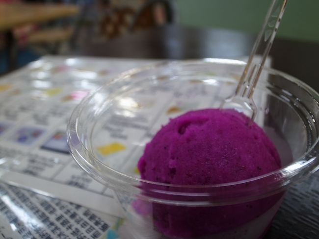ドラゴンフルーツ味をシングルで。色は着色料らしいけど、香りはつけてないって。ほんのり甘い香り。味はドラゴンフルーツそのまんま~。これは爽やかな後口でいくらでもいけそうだ!