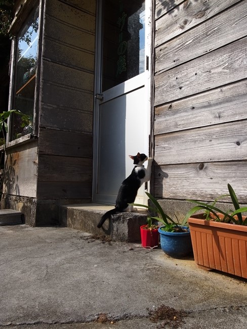 なんとかわいい子猫ちゃん!!入れて欲しいの??しかし、この家、右手に縁側があってフルオープンで住人と近所の人が話してましたけどね……そっちから入ったんじゃいけなかったんかね……まあおかげさまでかわいい姿が拝めましたけれども……。