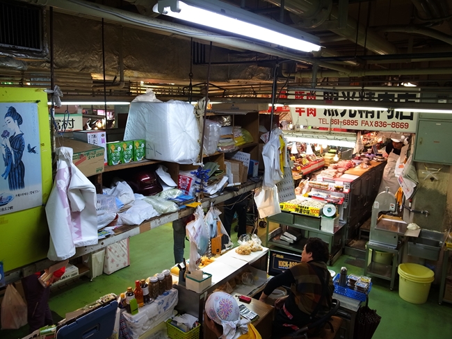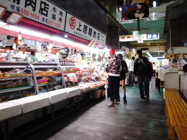 手前の方はお土産物なんかもあって観光客向けかなーと思わせつつ、がっつり生の肉や魚も扱っているので、地元の人も来ないこともないのだろう。