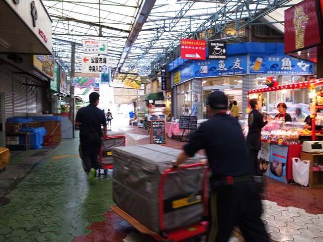 このとき、市場内でテレビ番組のロケがはじまり、ブラックマヨネーズ見ました。他のお店のおばちゃんたちも出てきて、見える?見える?もっと前行きな!って場所譲ってくれたので、本当は結構どうでも良かったけど見ておきました……。