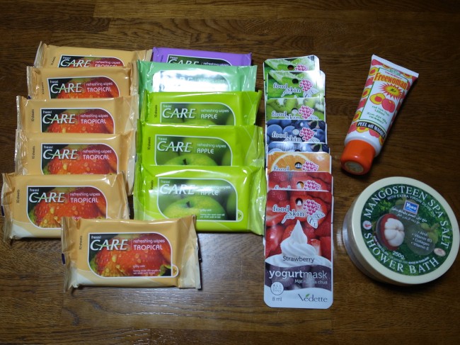 ひとまず化粧品などの売り場で、自家用+お土産に東南アジアと言えばのいいにおいのするウエットティッシュと、明らかに韓国コスメ「スキンフード」を意識した「フードスキン」て書いてあるフェイスパック(笑)。あと、安かったのでピーリングクリームとボディバター……と思って取ってたのが隣にあったバスソルトだったと言う。ピーリングクリームとか13,000ドンでしたね。なんか後で調べたら、トマトの何千倍だかのリコピンが含まれたフルーツ由来のクリームとか安くて話題のコスメがあったみたいですがリサーチ不足でよく分からず。