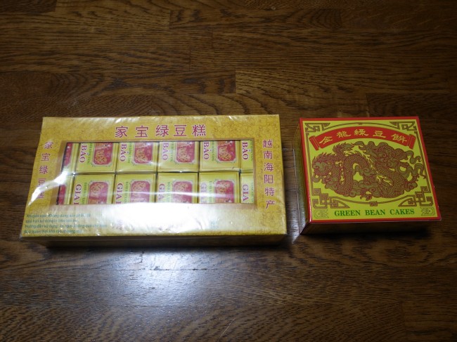 まんなかは緑豆のお菓子。なんからくがんみたいな感じ?案外おいしいです。会社でも好評。