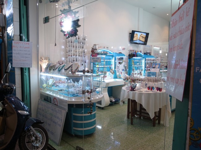 安物しか買わなかったんだけど、このお店の本分は天然石とか使ったゴージャス系だと思う。そんときはややベトナム感覚で高いな~とか思ったんだけど今思えばもっとちゃんと見ておけば良かったよ。しかし、短いネックレスのゴージャスなのがデザイン的にすごくすごくよかったんだけど、使わないんですよね……。