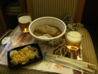 夕食@ファミマは、おでんとなんか芋のグリルにおにぎりとおビール様と言うセレクト。