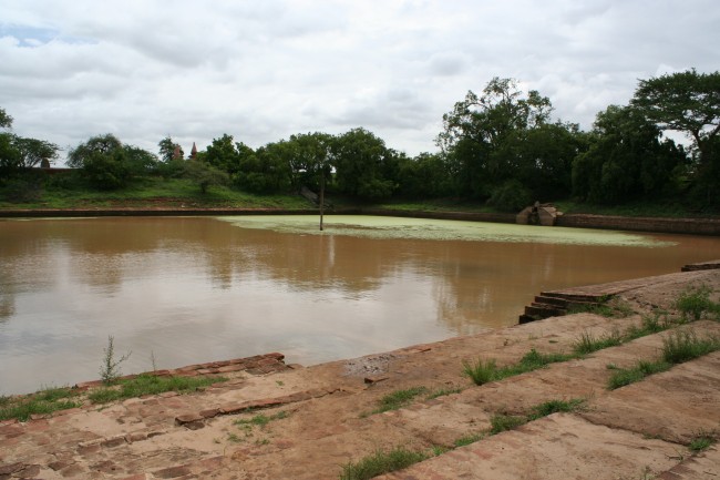 つってもこれ、近くにパゴダがあるようでそれと一緒の頃に作られたものだそうで、遺跡レベル!が、現役の溜池であります。雨季なのでお水たっぷり。