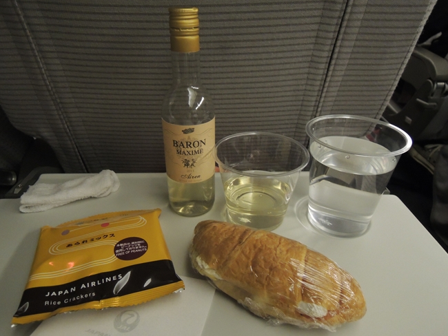 搭乗したら夜食出た。