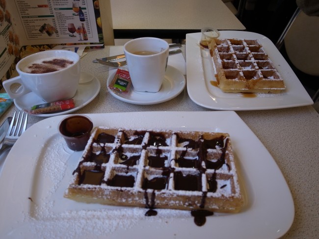 朝ごはんは普通に食べられそうだったので、のんびり行こうではないかとホテル近くのAUX GAUFRES DE BRUXELLESで朝食をいただいてから駅に向かう事にしました。