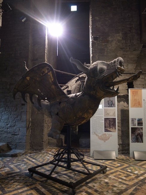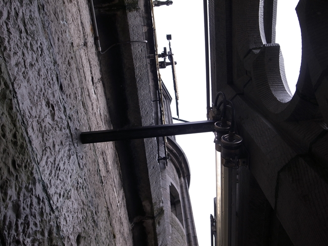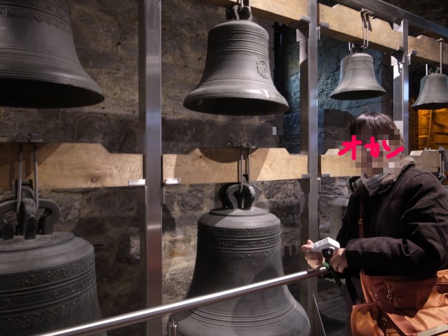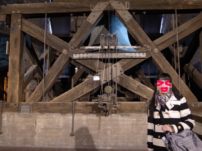 鐘楼の地下、基礎部分(もっとも初期の鐘楼の遺構があるよ!とかそんな感じ……)から見学を始めて、改築を重ねた各時代の鐘楼の模型や、尖塔の飾り(実物かな?)、過去に使われていたカリヨンの鐘をバラしたものとか、カリヨンの自動演奏器と思われるもの(オルゴールみたい)、カリヨンの仕掛け部分などなどが各フロアに展示されています。登る途中に見たものもあれば降りる途中に見たものもあります。本来の順路は不明!