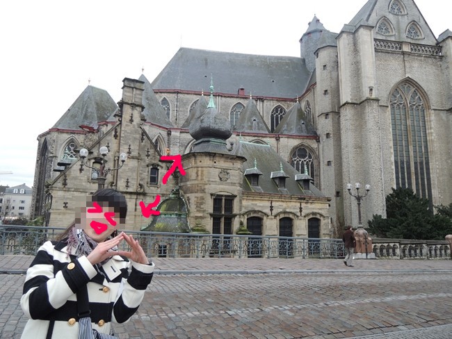 ところで、運河の景色はゲントの観光において通常結構なウエイトを占めるものの筈なのですが、曇り空でどうせきれいに撮れないし~とか思っていたようで、景色だけ撮った写真があまりありません。ですが字ばかり連なっているのもアレなので、記念撮影を載せておきます。