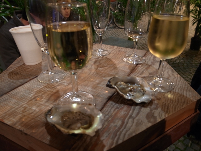 ワインいっぱいと生牡蠣おひとつで5ユーロ。カキは味が濃くって身がプリプリで激ウマでした~。寒いのでアルコールがどんどん入る(笑)。 しかし悪酔いしない。