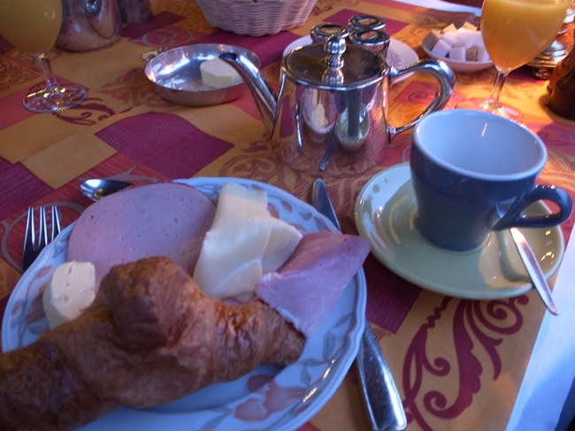 朝食はパンとコールドミートとチーズがブフェになっていて、卵料理はリクエストすればいただけました。これにゆで卵食べたよ~。シンプルですがパンやハムがおいしいので満足。