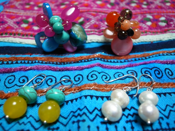 天然石のアクセサリーのお店で、ぜんぶいっこ200-300B!これは安いかなと。ピアスは金具はちゃんとシルバーだし。時間が無くて10分くらいでこれだけ物色した私を誰かほめて欲しい(笑)!!