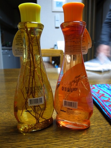 キャンディのフードシティにぶらりと入ってなんとなく買ったヘアオイル。成分表示とかがシンハラ語オンリーで何が何だか分かりません。