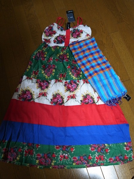 で、買ったのは結局オデールオリジナルタグのついてたアパレルコーナーにあったビスコースのストールとコットンのワンピ。インドあたりで作ってそうな感じ。でもかわいいっしょ。ストールが1,050Rsでワンピが2,250Rs。
