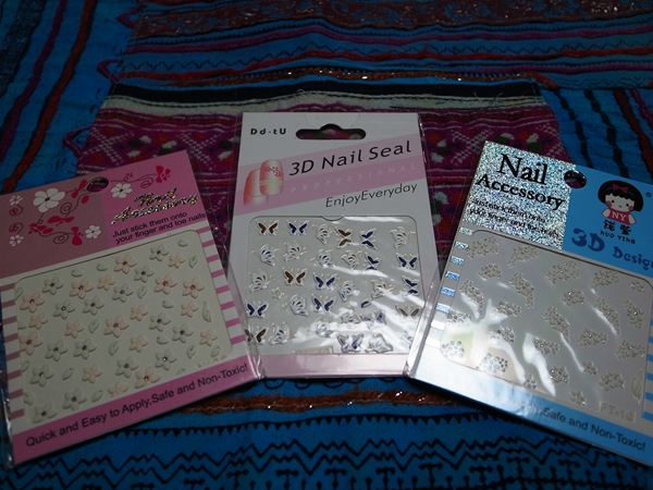 なんてことはないネイルシール、雰囲気で買っちゃった。3枚で100B。