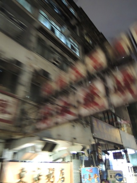 湾岸の夜景を眺められる道を走った後はごちゃごちゃとした通りに入って行きます。屋台街を上から眺めて遂に『THE・香港的風景』スポットへ。