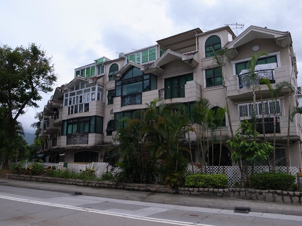 なんかかわいい色合いのアパートみたいなのとかあります。結構、街中もそうだったけどピンクに塗っている建物が多い気がします。でもなんか、こういうのが平均的な香港の中流家庭だったりするのかな?と思ったり。街中って高級でキレイなところと雑然としているところの落差がすごすぎてどのあたりがフツーなんだかよく分かんなかったんだけど、この辺り歩いているとこういう感じが普通~やや上くらいなのかな?とか思いました。