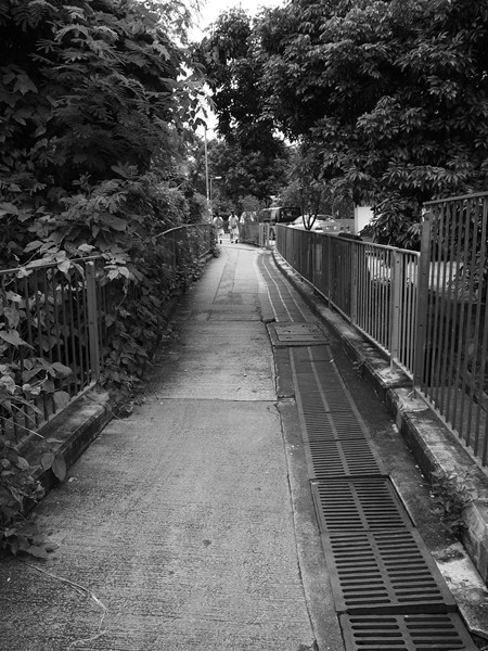 コレただの街歩きin香港の田舎に終わるのでは……?まあ地図なくても駅に戻るくらいは出来ますし折角来たのだからちと歩いてみますか……。なんか今にも雨が降りそうなどんより感がすごい気になりますけど……目的地に辿り着けずこんなちょっと雨宿りするようなお店もない場所で土砂降りになったりしたらどんな踏んだり蹴ったりですか……。でもここまで電車乗りついでとんぼ帰りと言うのもイヤです。そんなワケで生活感溢れる細い道へとゴゥ!←空元気