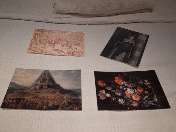 ポストカード買えた中ではバベルの塔(左下)が好きかな……見ててハッピーになる類の絵ではないですけれども。