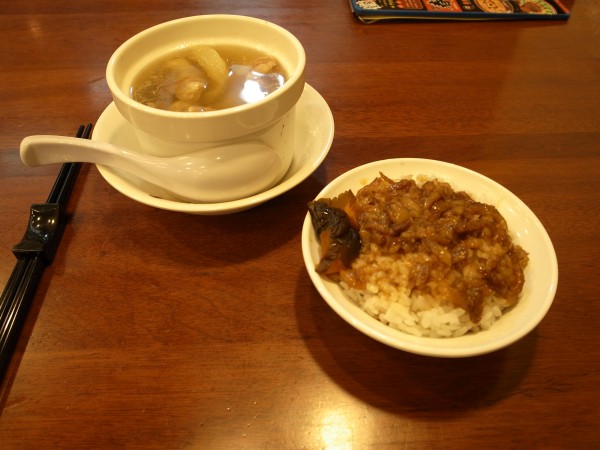 駅までの道のりでちょうど「ヒゲ張魯肉飯」を発見したので、魯肉飯とゴーヤの排骨湯をいただく。