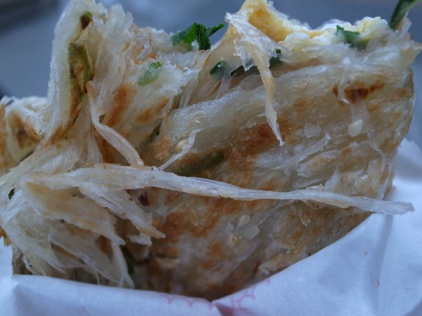しかしおなかは減っていたので、またしても駅前で何かの生地に何かの具を巻き込んだクレープ状のものを買う。葱餅?みたいな感じのことが看板には書いてありました。