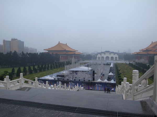 まずは中正紀念堂です。広いエントランスの左右にはドデカい音楽ホールがあります。そのせいだかどうだか知らないですが、MRTから地上へ上がる通路などでダンスなどのストリートパフォーマンスなどをしている方々が多かったのですが、ここの広場にもそういう方がたくさんいました。雨なのにねー。晴れてたらもっといるのかも。