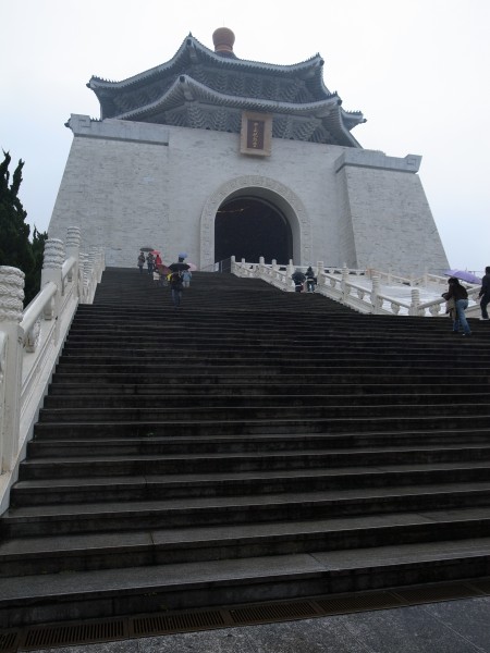 さて。紀念堂本体の下……て言うかもう、山の麓って風情ですけど、麓に辿り着きました。遠かった。遠かったがしかしこれからこの階段を上らねばならんのですよ!高ッ!!この階段は蒋介石の没年齢と同じになっていて、との事なので無心になるべく数を数えながら昇ります。途中で振り返ったら結構怖い高さでした。
