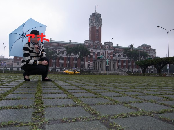 そして今度は遠い総統府へ向かいます。歩いて15分くらいかー大したことねーなと思ってたけど、なんか大したことありました。雨の中片側四車線くらいの車道の脇の人気の少ない歩道をビタビタ歩いていくのはなんか大したことありました。疲れたとかしんどいとかじゃないんだ、なんか寂しい……。