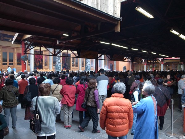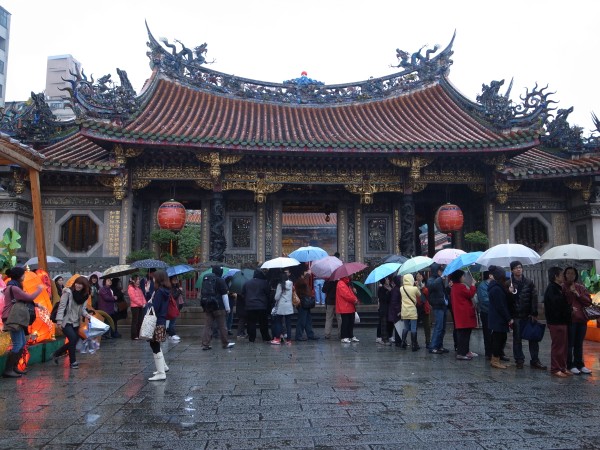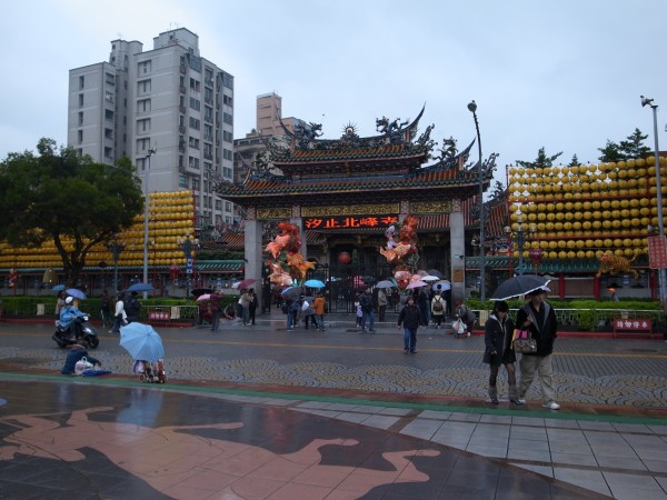 今度こそ!龍山寺へお参りです。旧正月明けなので、境内にはにぎにぎしくイルミネーション的なものもたくさんあったりして。日本人の感覚的には有難さの感じられないド派手な灯篭人形のようなものをくぐるか何かするとご利益があるようで長蛇の列が出来ていました。