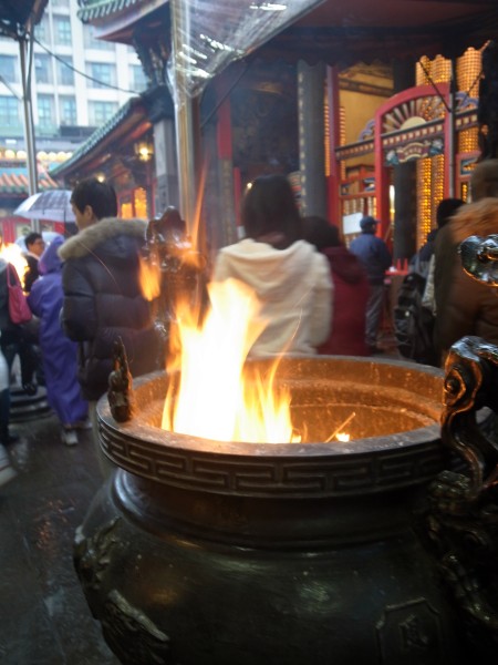 参拝者が多いので香炉が燃え盛って炎を上げています。なのでみなさんお香は投げ入れる感じ。普段から投げ入れ方式なのか普段はそうでないのかはちょっと分かりません。で、投げ入れたら周りの人と同じように手を合わせてなむなむ……そして次へ、と。何にせよ人が多いのでこれをするだけでそこそこ時間がかかりました。