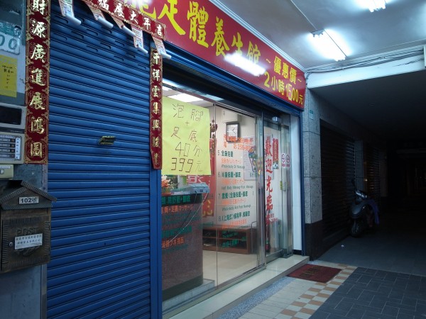 最初からそう思っていたので、台北Naviでホテルの近くで深夜営業しているマッサージ店を予め調べておきました。一箇所はなんかちょっとお洒落で清潔な店構えで日本語メニューもあったりちょっとしたエステメニューもあったりするようですが、台北Naviの口コミによると「オプションメニューの売込がうっとうしい」「ヘソキャンドルでヤケドした」などの芳しくない情報が多かったのでパス。少しだけ離れた(って言っても徒歩3分くらい?)、地元の方向けで結構長くやってきたけどこれからちょっと観光客向けも強化していきたい、そんなモチベーションが感じられるもののあんまりおしゃれではない方のお店へ行くことにしました。